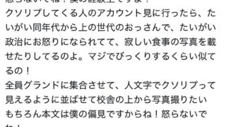 talk嫌儲 有名芸人「クソリプつけてくる人のアカウントを調べたら、政治に怒っていて寂しい食事を載せてる上の世代のオッサンばかりだった」