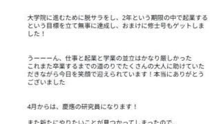 芸スポ “脱サラ”で吉本所属の女性アナ、慶大大学院卒業「慶應の研究員になります!」