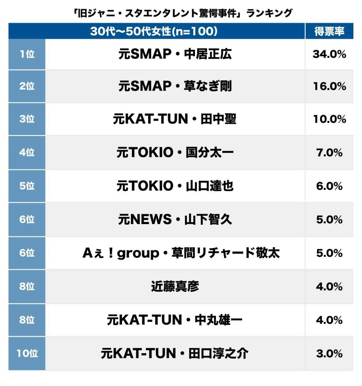 第3位(10.0%)は、元KAT-TUNの田中聖。