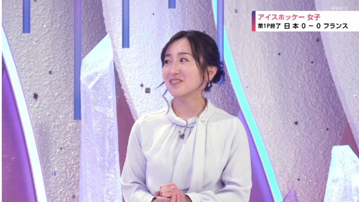 この日開幕するミラノ・コルティナ五輪、中でも女子アイスホッケーチームの試合直前の様子を東京のスタジオから見守った藤沢は薄紫のブラウスに白のパンツの清楚な服装で登場。