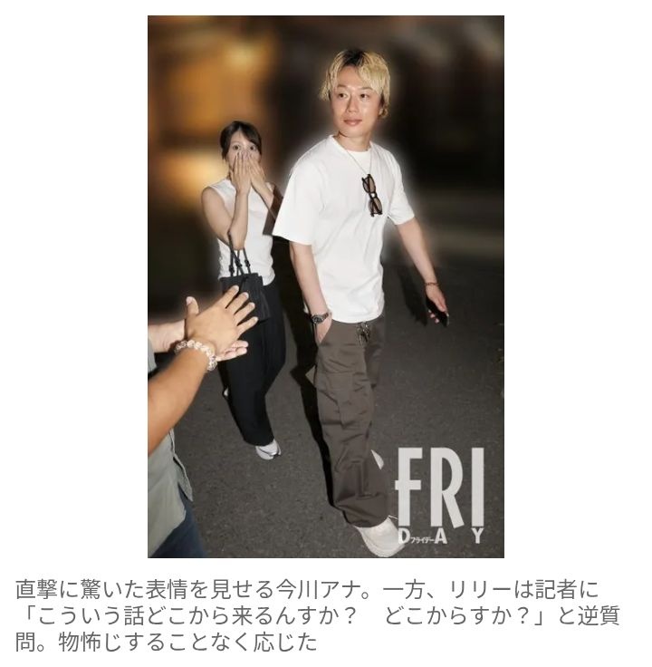 8月29日発売の『FRIDAY 9月12日・19日合併号』と、有料版『FRIDAY GOLD』では、交際のきっかけや直撃の際にリリーから飛び出した「結婚宣言」などについて詳細。さらに二人の手繋ぎデート風景などの写真も掲載している。