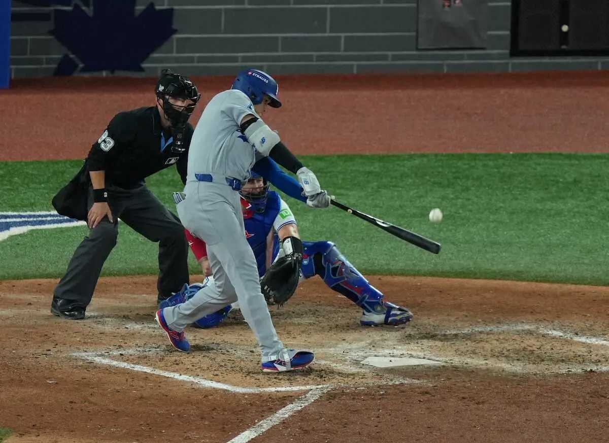 この試合、連覇を狙うドジャースの大谷翔平投手は敵地でのブルージェイズ戦に「1番・DH」で先発出場。7回の第4打席で自身WS初本塁打を放ったが、チームは投手陣が崩れて大敗を喫し、初戦を落とした。