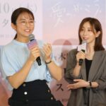 演じる役柄をものまねしながら田中みな実(右)を参考にしたと話す木村文乃(撮影・西岡正)Snow Manのラウール(22)が8日、東京・フジテレビ湾岸スタジオで行われた、同局系ドラマ「愛の、がっこう。」(10日スタート。木曜、後10・00)の制作発表会見に出席した。高校教師とホストによる禁断で純粋な愛を描いた作品で、ラウールはホスト役に初挑戦。抜群のスタイルが際立つストライプスーツ姿で「よろしくお願いします。よいしょっ!」とホスト風にあいさつし、主演の木村文乃(37)、共演の田中みな実(38)、中島歩(36)、沢村一樹(57)とのトークで盛り上がった。