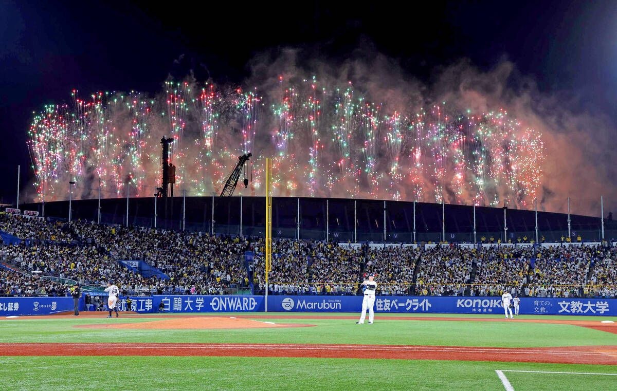 午後8時11分。小幡が遊ゴロを打ったタイミングでMUFG国立からド派手な花火が打ち上がった。7回2死走者なしの場面で試合が約1分ストップした。