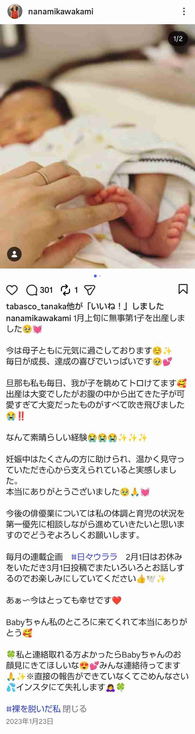 川上なな実、結婚&妊娠を報告「とてもしあわせな授かり婚となりました」 - 2 : 2026/01/29(木) 09:38:32.87 ID:9mp+beuL0