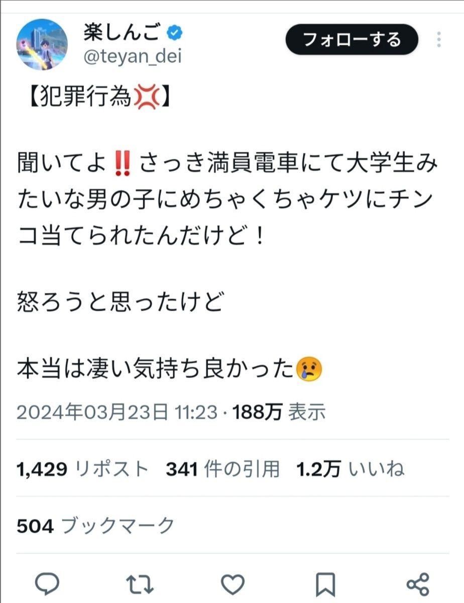 【画像】楽しんご、電車で痴漢に合いブチギレwww