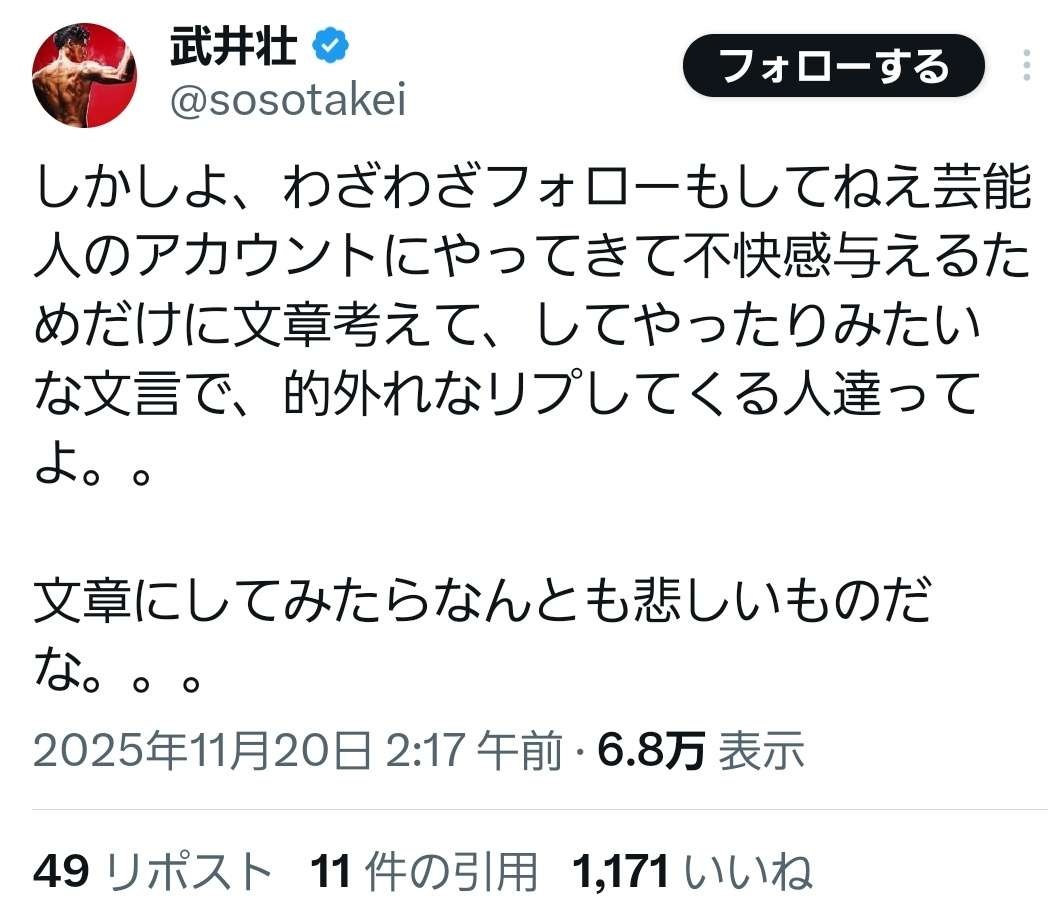 人の目に触れる場所で公言したなら批判に晒される事も許容しろよ - 23 : 2025/11/20(木) 09:57:34.18 ID:1O+TyH1C0HAPPY