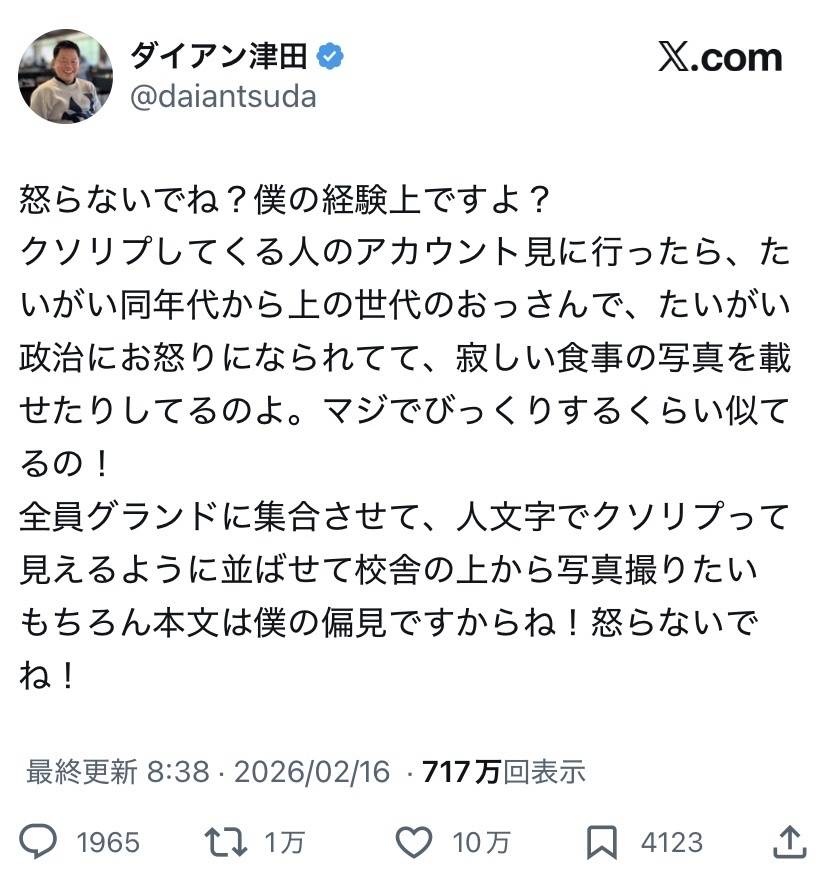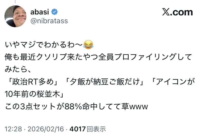 暴言吐いてるやつちょっとみてみると政治について語ってるやつばっか - 50 : 2026/02/16(月) 21:55:14.51 ID:SuRXSHup0
