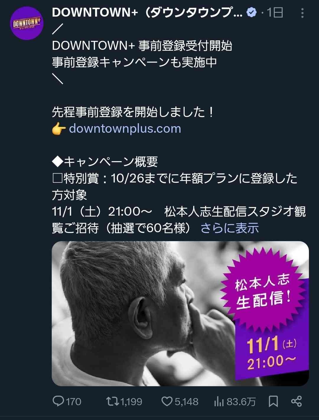 【超速報】ダウンタウン+(月額1,100円)、83万人突破www