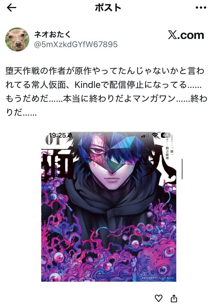 - 犯人の別名義で原作やってる作品もKindle配信停止😿
