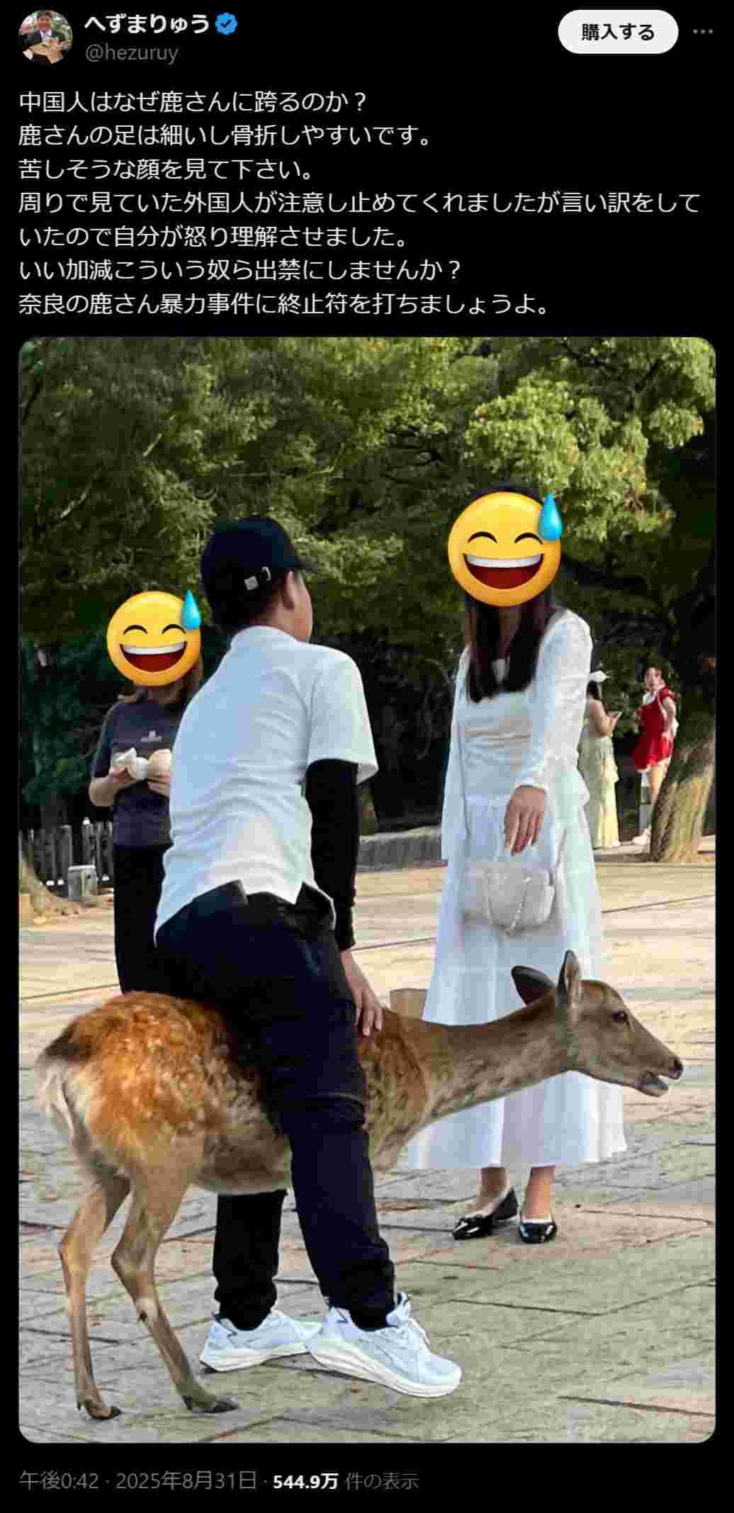 - 鹿さん鹿さん言って外国人差別をするバカウヨを騙せば年収1000万円です、ジャップちょろすぎて草