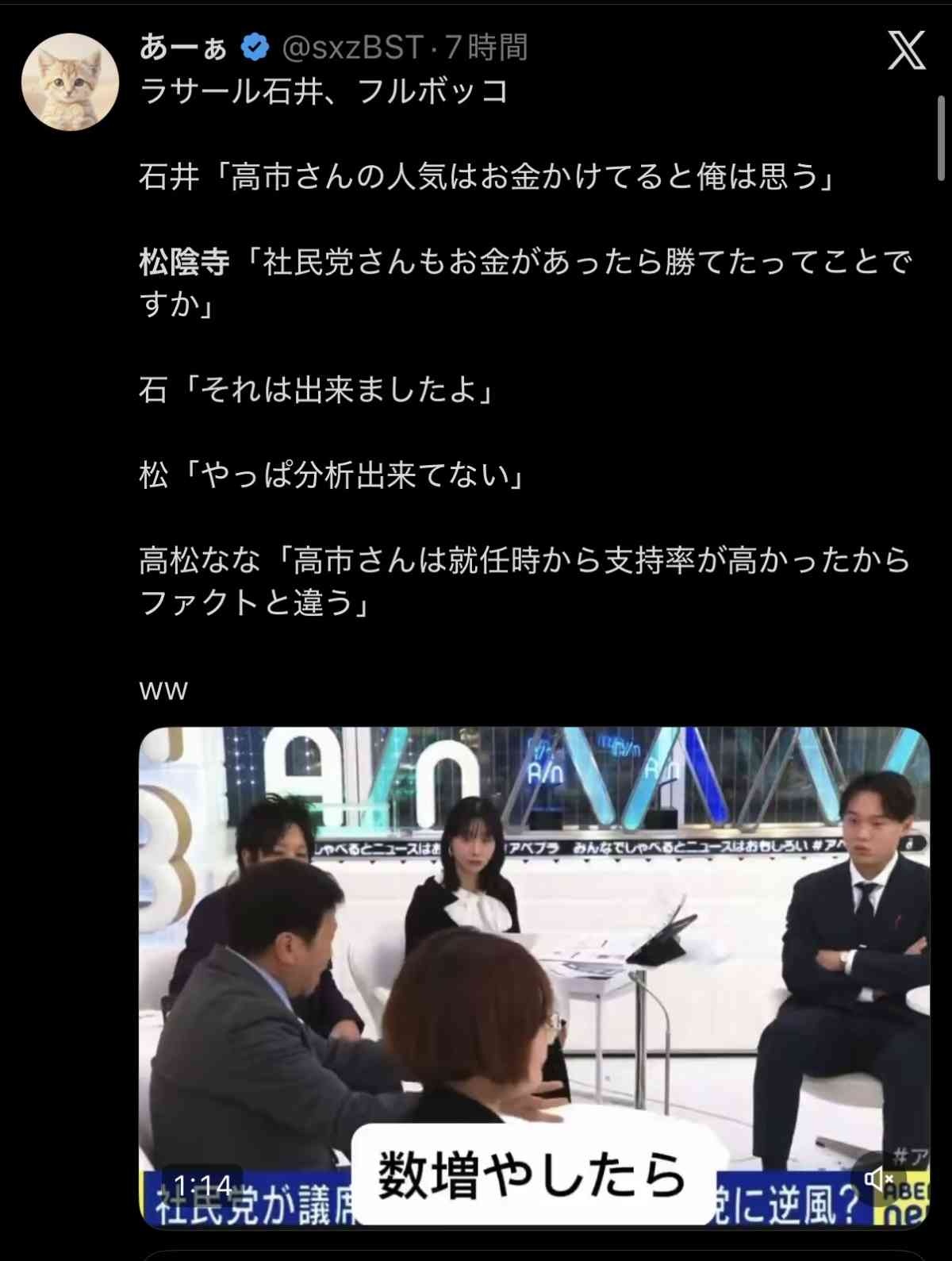 金かけてた事は誰も否定してないやろ元々高市政権の支持は80%だから、他党が同じように金をかけても同じような結果は得られないし