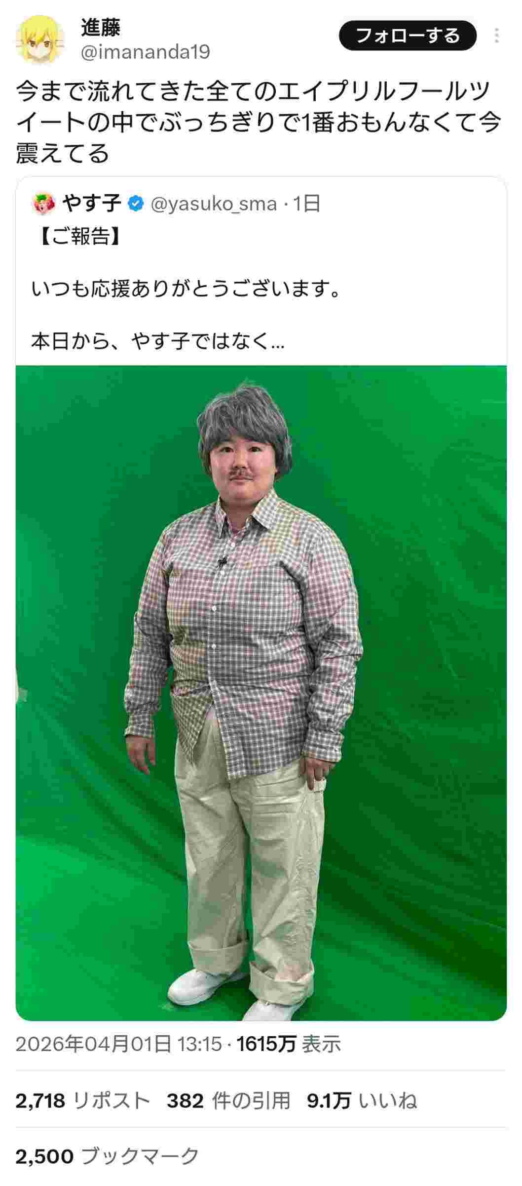 やす子さん、エイプリルフールのネタが面白くないと炎上
