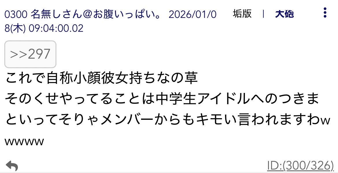 https://itest.5ch.net/egg/test/read.cgi/indieidol/1767232872 - 2 : 2026/01/09(金) 19:42:49.48 ID:LMh62PKr0