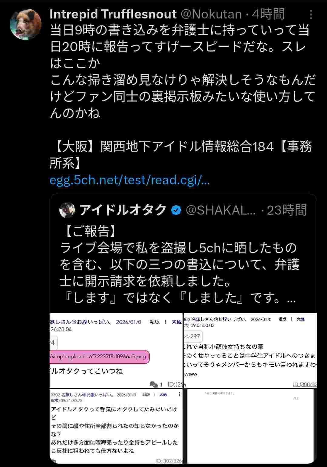 アイドルオタクを盗撮し5ちゃんに晒したケンモメン、即日開示され刑事・民事ともに告訴へwww