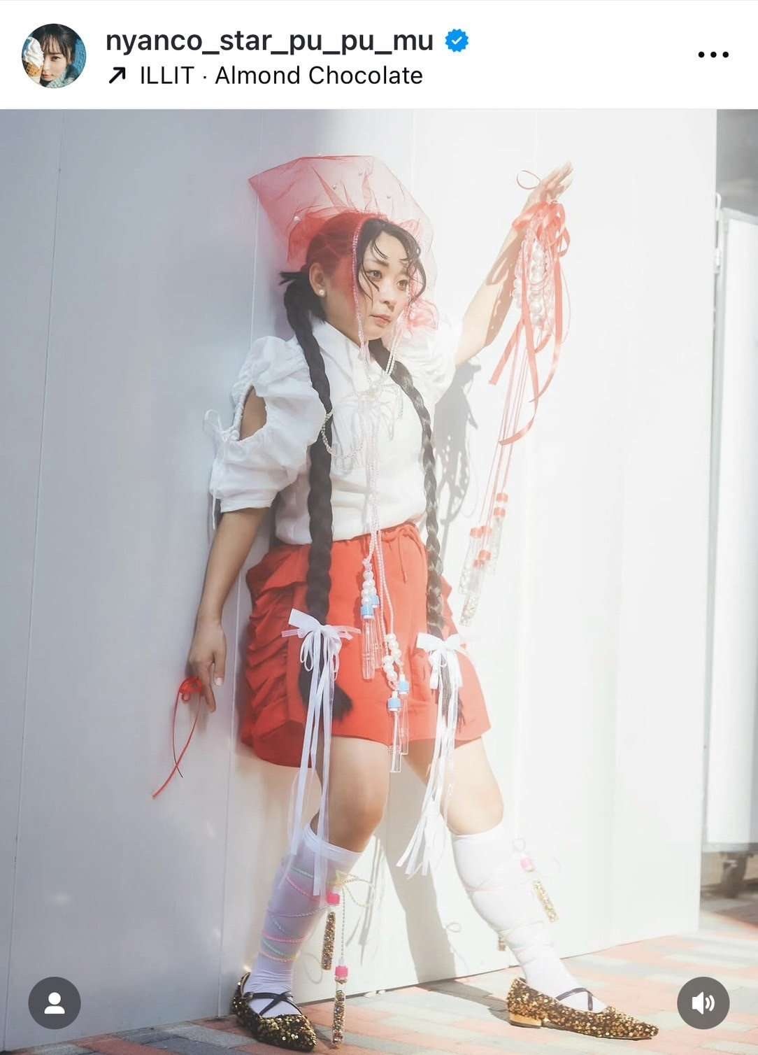 「今回ご一緒したのはスタイリストの小高愛奈(※高=はしごだか)さんです!@pyonnnoinsta 小高さんはいつか芸人の専属スタイリストになりたいらしく、アンゴラの衣装も色々考えてくれて新しく作ってきてもくれました!」と今回の仕掛け人を紹介。「私が、スタイリストさんとなにか一緒に作るならやってみたかったのが『なわとび』を衣装に取り入れることでした!」とつづり、全身になわとびをぶら下げた個性的なスタイリングを披露した。