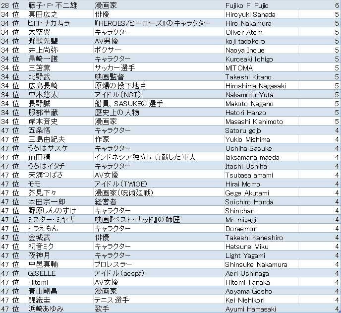 海外でバズった『Googleを使わずに、最も有名な日本人の名前を挙げてください』を集計してみたら色々と興味深い結果になった