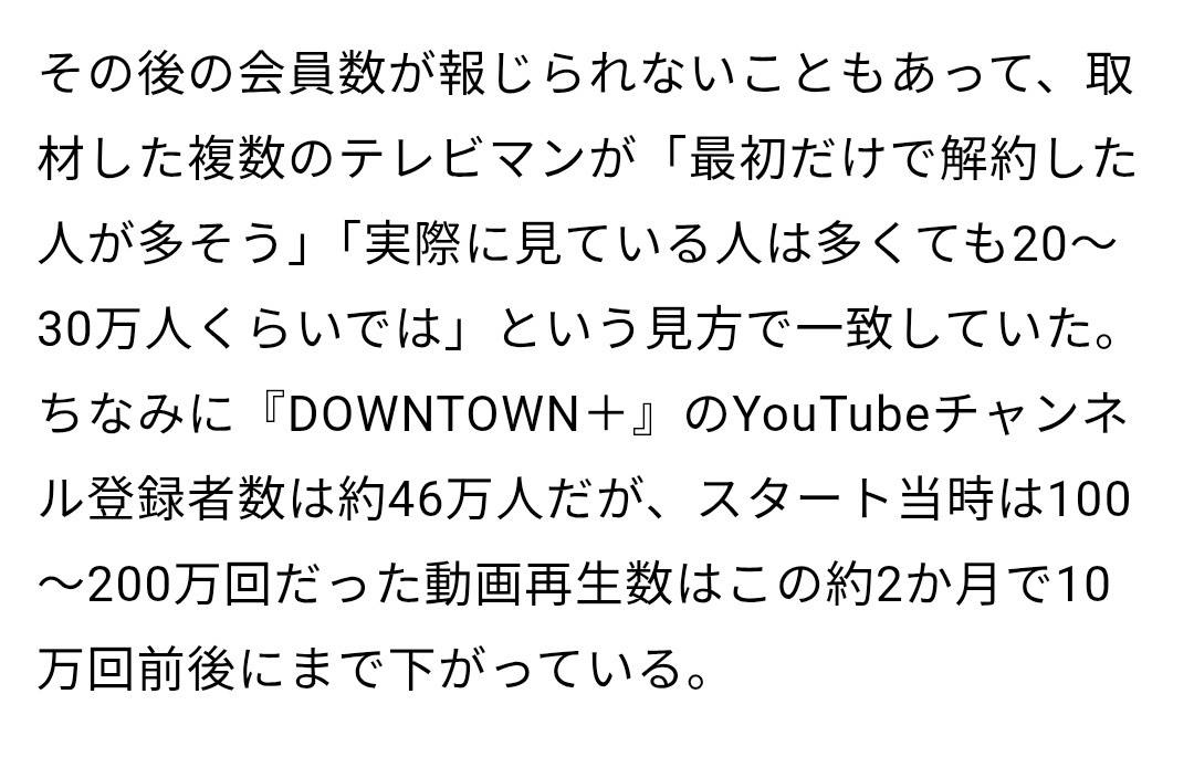 ダウンタウンプラス、会員が50万人から20万人に激減www