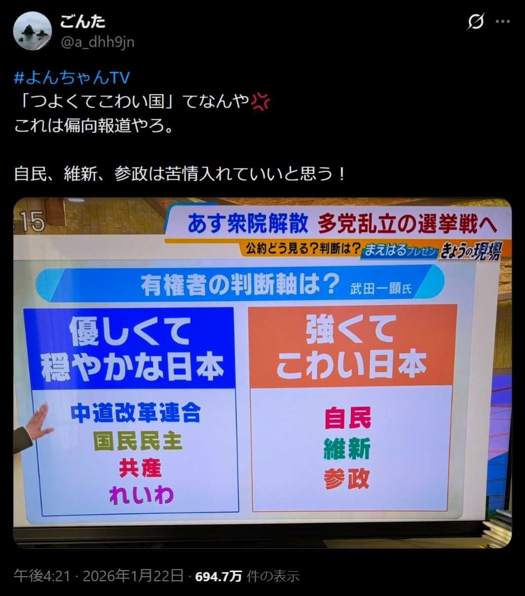 テレビ「各政党のイメージは…これでええか」⇒普通の日本人たちブチギレ大炎上
