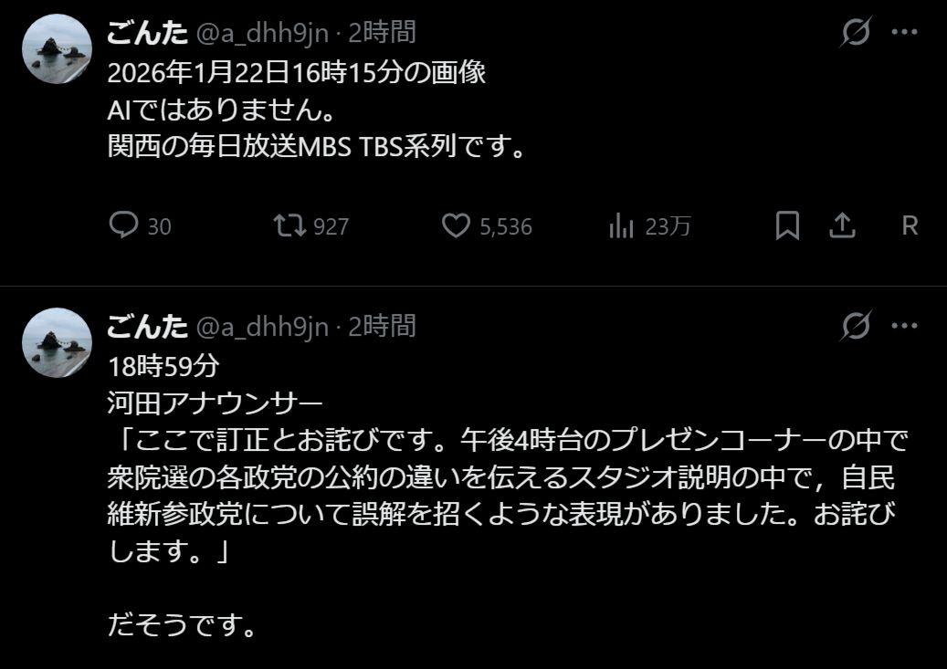 でもマスゴミにそう言われるのはヤーヤーなの!😡 - 22 : 2026/01/22 22:21:44 3GGeo