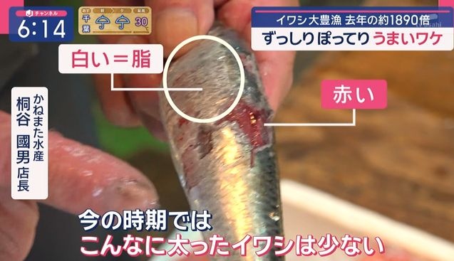 テレビ「現在イワシが豊漁中!なんと昨年の1890倍獲れており脂も乗って太っているのに1匹約50円」