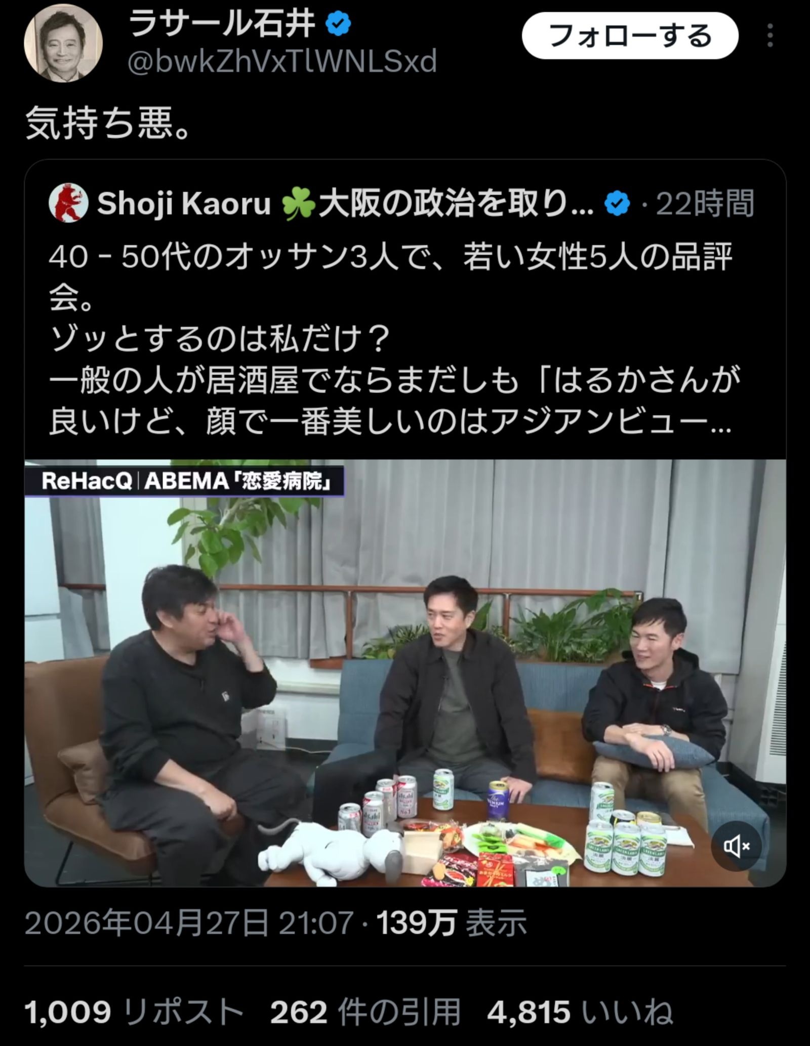 石井も十分に気持ち悪いが - 14 : 2026/04/28(火) 15:19:58.20 ID:0wh+c8M60