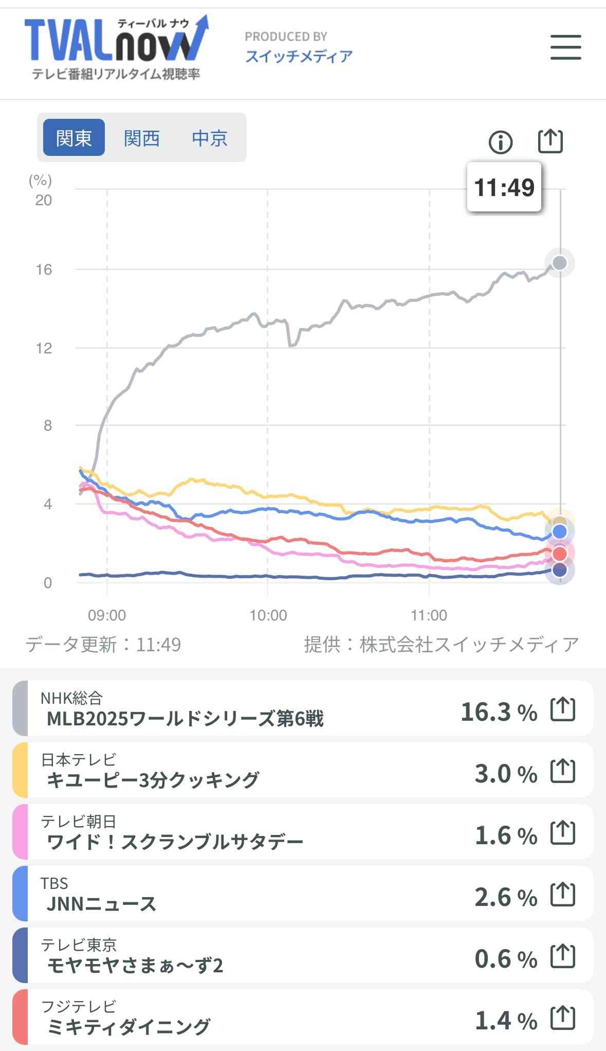 明日日曜日で優勝決まる試合だからさらに視聴率上がる