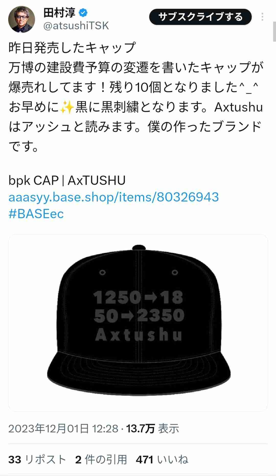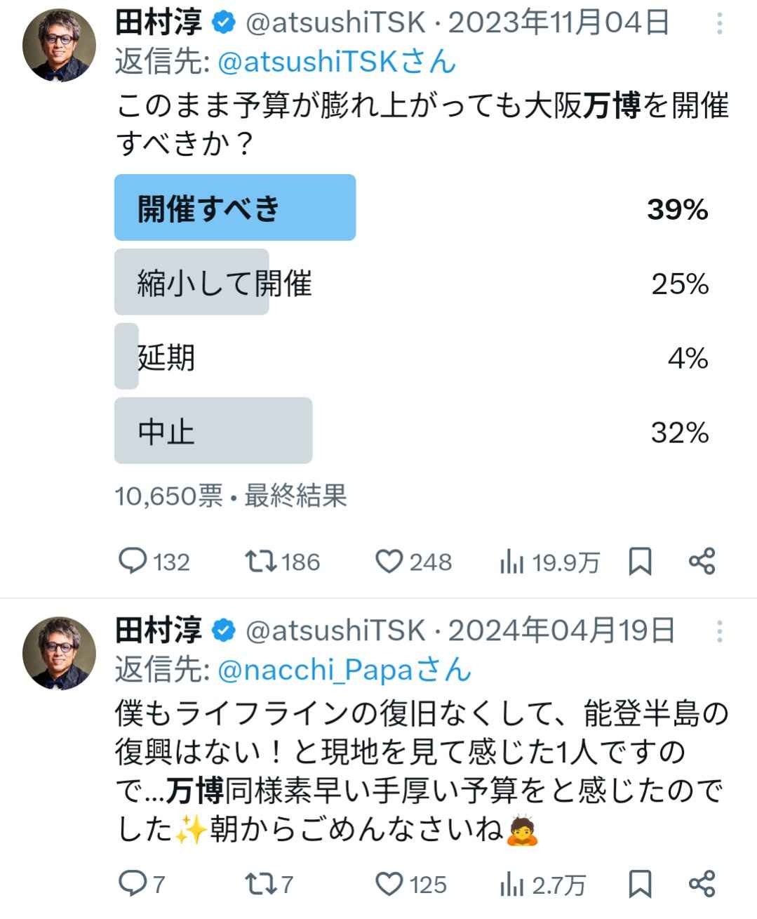 万博反対キャップまで作って反対していた田村淳さん「イタリア館すげえ!万博最高!」⇢炎上