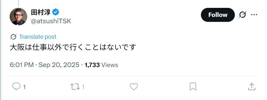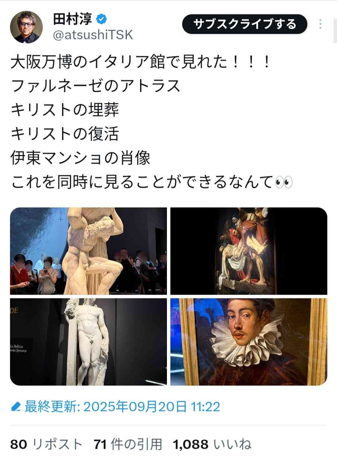 田村に煽られた人たちが事実上万博にいけなくなってから自分だけ特別ルートで楽しんだというのが印象悪い - 78 : 2025/09/21(日) 13:42:06.97 ID:rXjiGaRR0