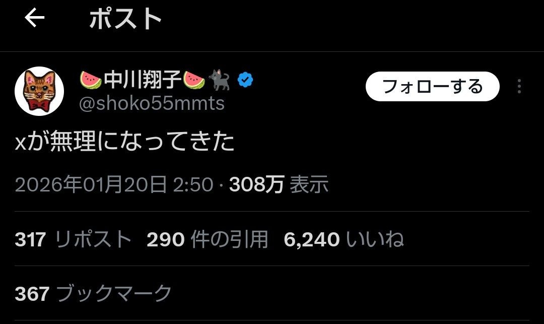 「訃報のお悔やみを述べた5秒後に爆笑ツイートをポストできるサイコパスのみが𝕏を続ける資格を有します