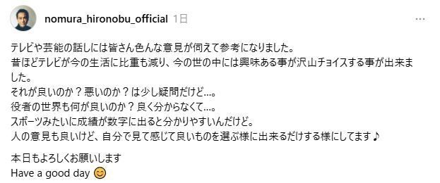 「比べものにならないくらい…」俳優の野村宏伸(60)が19日までにThreadsを更新。番組制作費や出演者のギャラが削られるテレビ業界の現状についてつづった。