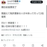 元プラスマイナス岩橋、参政党に投票「行け!参政党!!強い日本を取り戻せ!!!」