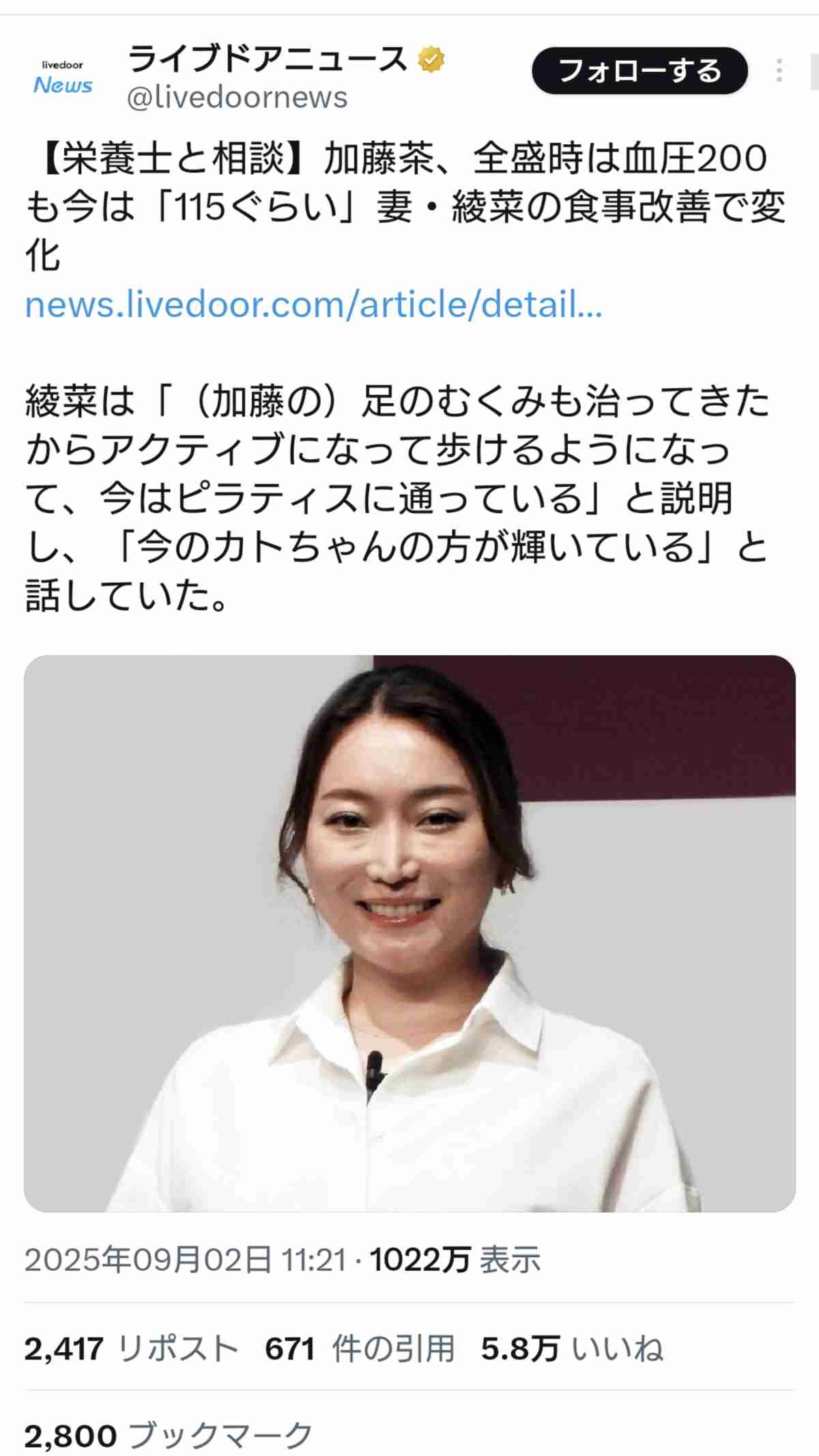 こいつ加藤茶のこと無理やり健康にさせて幸せにすることで金を長く搾り取ろうとしてるだろ