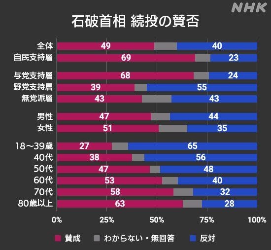 - NHKの世論調査がまともだとは言わんが、保守党支持層で取ったアンケートは偏りも酷いだろ