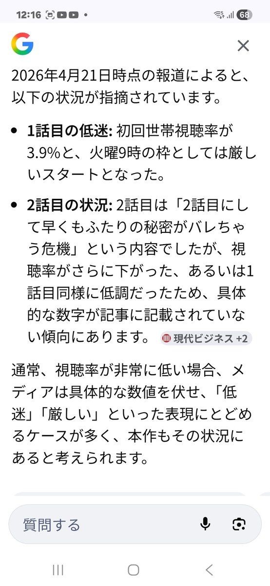 「見なくてもいい」日曜劇場&朝ドラが“ダブル低視聴率”に苦しむワケ 面白くても選ばれない地上波ドラマの構造 - ライブドアニューステレビはまだまだトガっている。心に“刺さった”番組を語るリレー連載「今週のトガりテレビ」。今回は、日本テレビドラマ界を支える日曜劇場・朝ドラ、そろっての“低視聴率”について考える。 【画像】戸田news.livedoor.com - 2 : 2026/04/29 14:09:42 dGauC