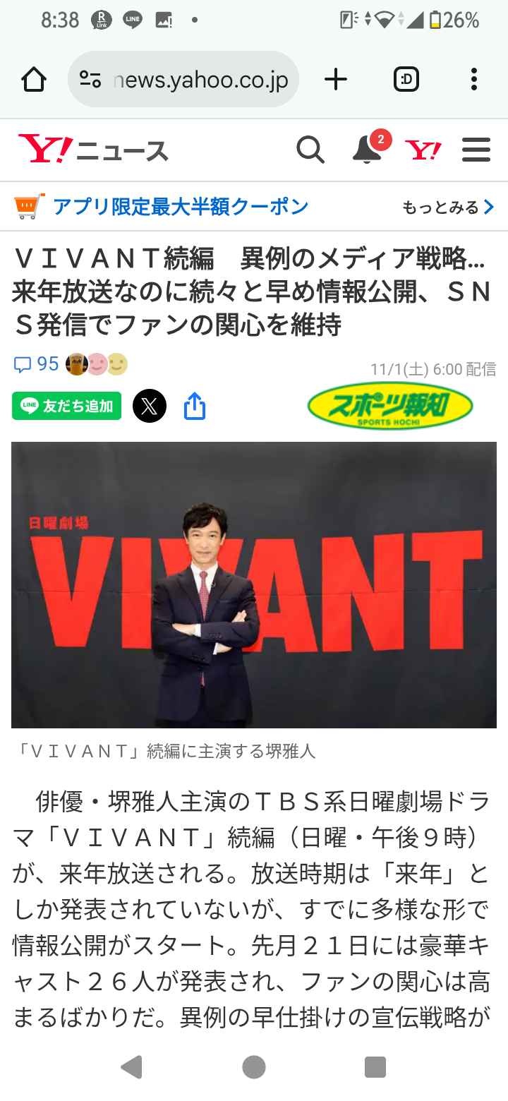 堺雅人主演『VIVANT』続編 異例のメディア戦略… 来年放送なのに続々と早め情報公開、SNS発信でファンの関心を維持