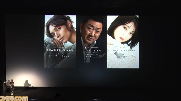また、キャスト情報として、チャーリー・フレイザーさん、マ・ドンソクさん、浜辺美波さんが出演することも明らかに。さらにゲームエンジン上でレンダリングした浜辺美波さんの画像も公開された。