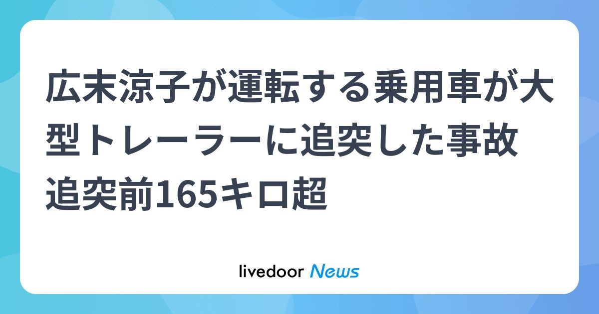広末さん追突前に時速165キロ超で運転 - ライブドアニュース