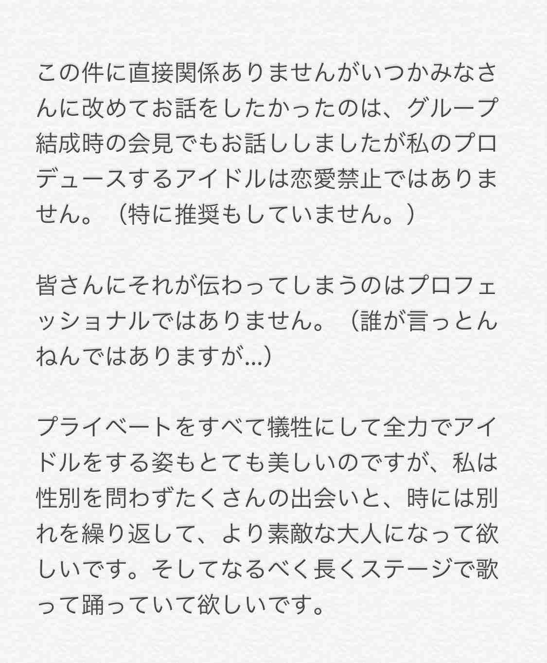 - プロデュースって恋愛してても良いって空気を作り出すもんであって自分から言っちゃうのはちょっと気持ち悪い