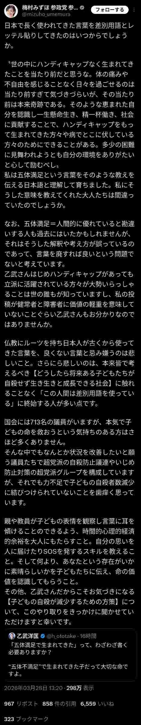 政治家「五体満足で生まれた子供達の自殺率が過去最多に…」→乙武洋匡マジギレwww