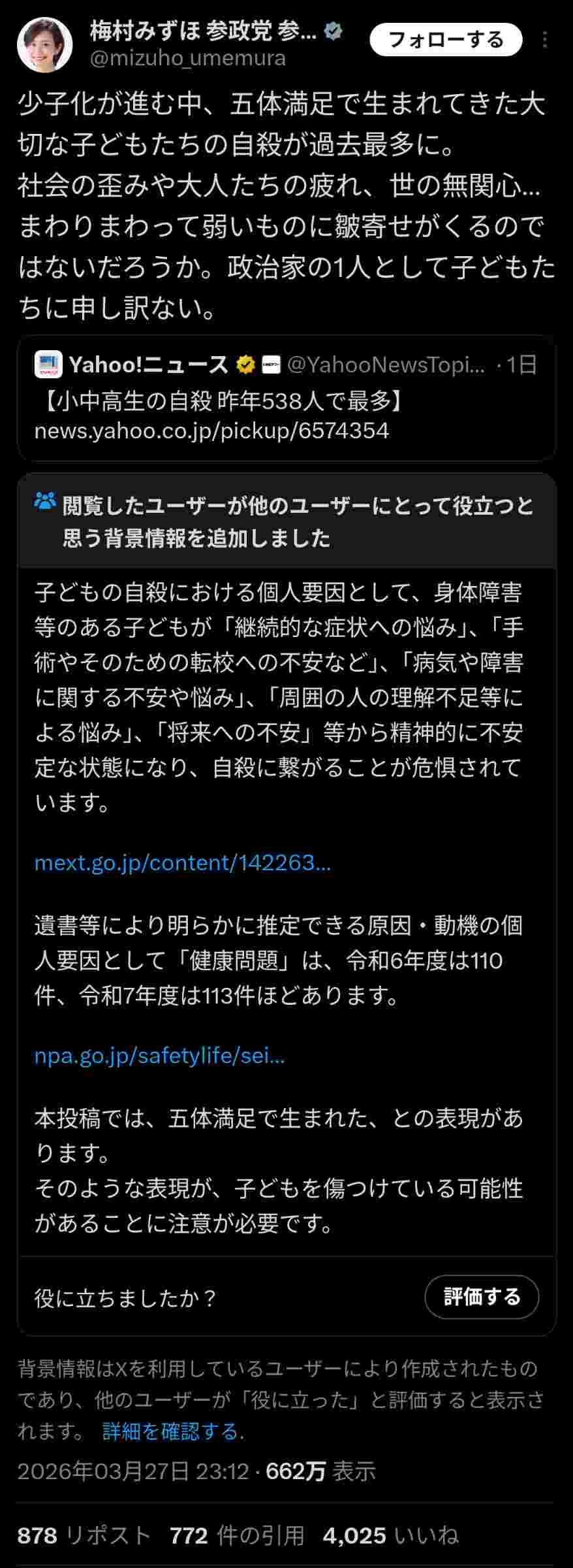- どうせ田舎の自民党の市町村議員かと思ったら参政党梅村みずほかよ