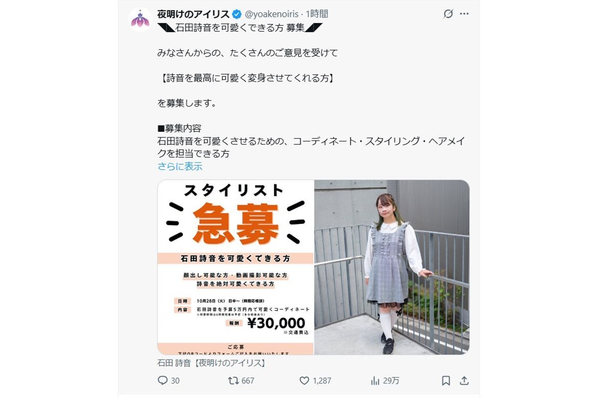 「たたかれ過ぎでかわいそう」「好みじゃないならスルーすればいい」など擁護の声も見られる中、公式アカウントはさらなる“奇策”を発表します。19日正午過ぎ、「スタイリスト急募 メンバーをかわいくできる方 募集」と発信したのです。
