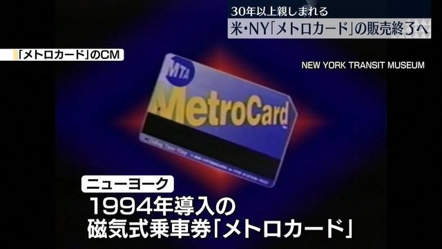 https://news.yahoo.co.jp/articles/5ca88da4d6b62a8ea08a0cfb219adfa31b985536アメリカ・ニューヨークの地下鉄などで30年以上にわたり親しまれてきた乗車券「メトロカード」の販売が、今月末をもって終了します。