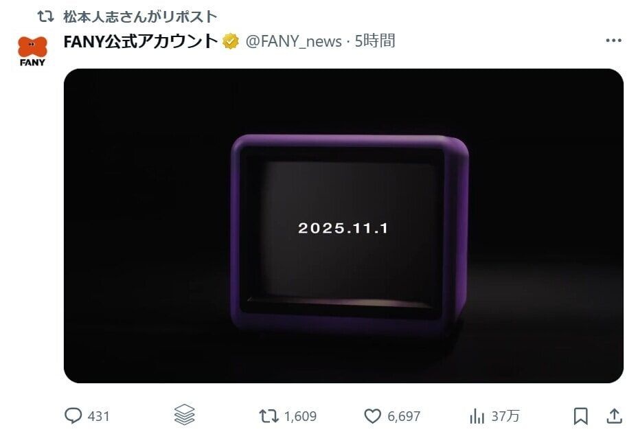 お笑いコンビ・ダウンタウンの松本人志が10月1日、FANY公式Xに投稿された“意味深な予告映像”を自身のアカウントでリポストし、ネット上で大きな話題となっている。