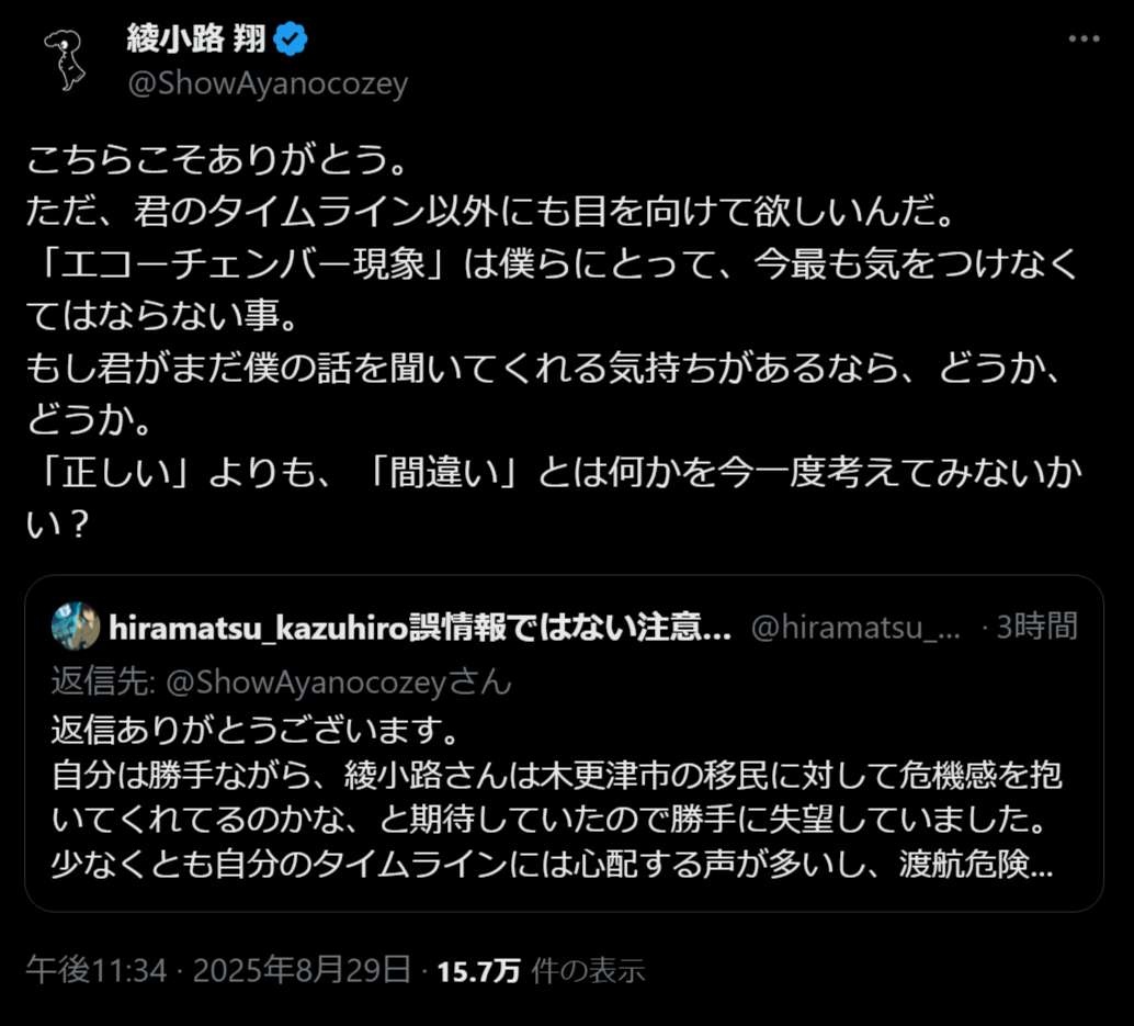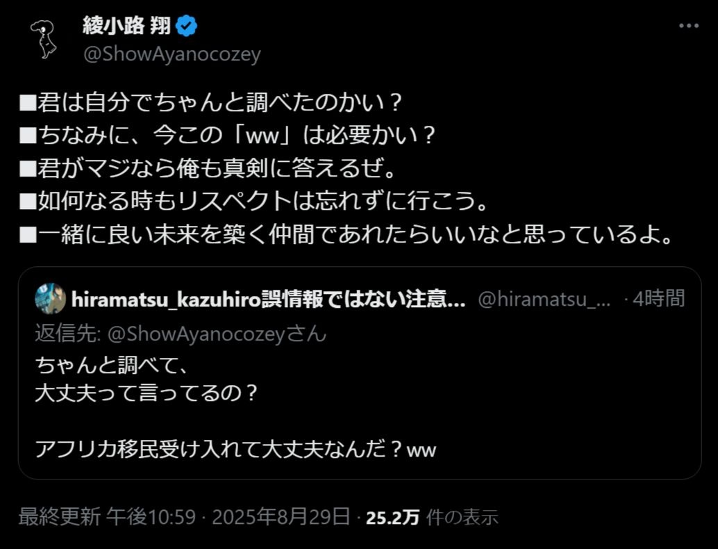 - 脊髄反射的に発狂してる奴らや草生やして「ネトウヨざまぁw」とか言ってる奴らよりは万倍冷静でまともだな