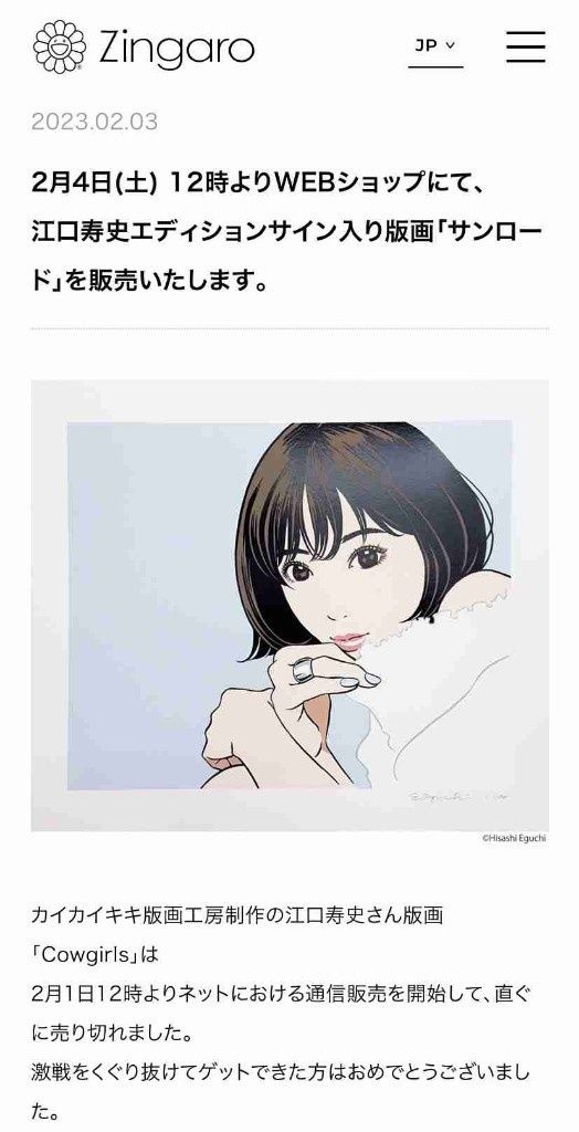江口寿史、勝手に西野七瀬をトレパクし版画にして村上隆のギャラリーで14万円で販売www
