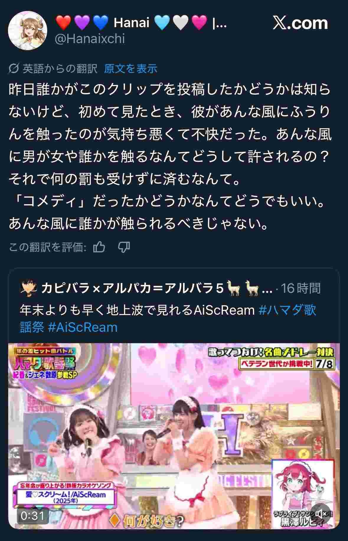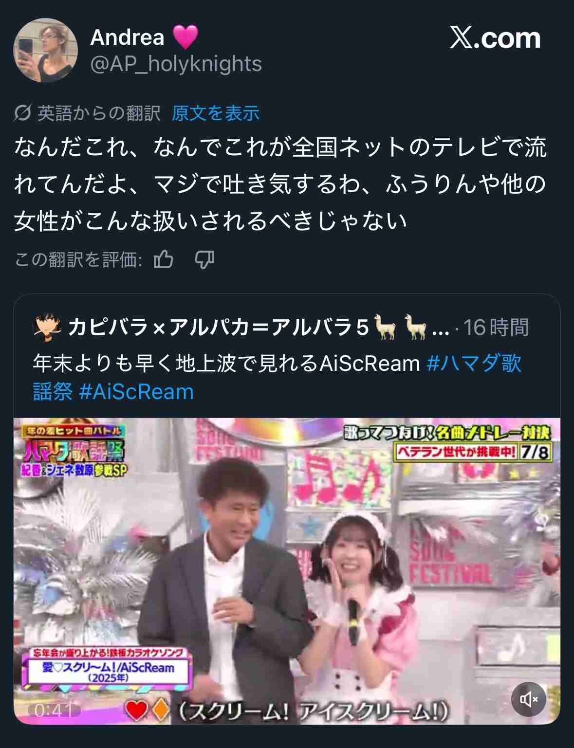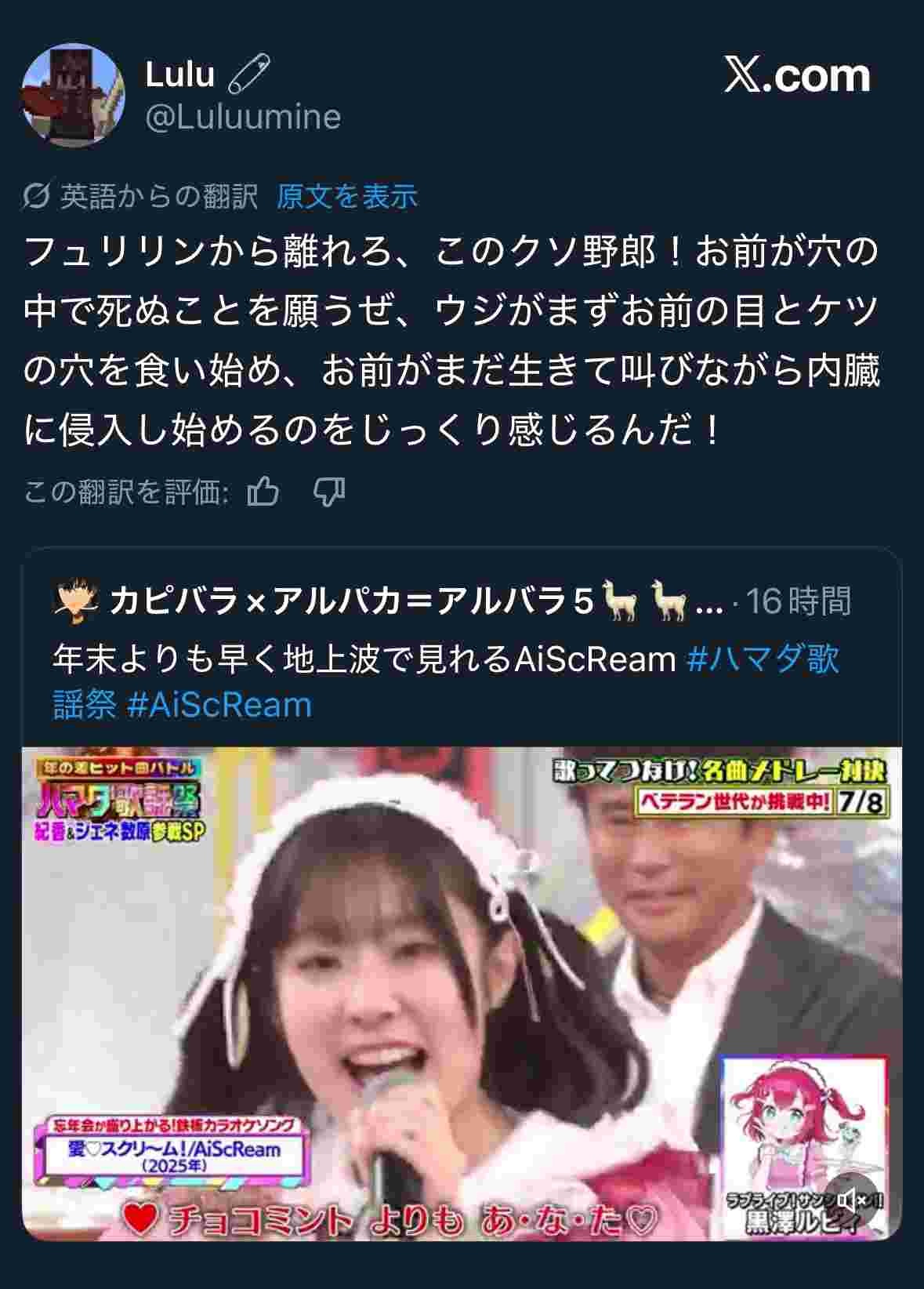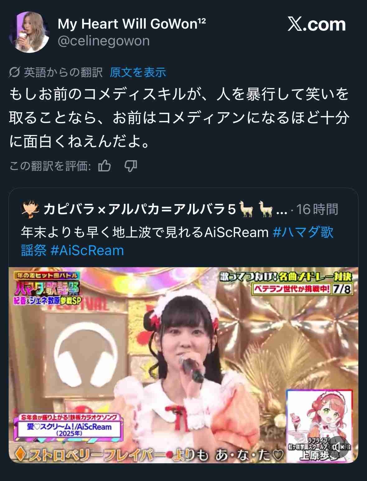 自分のほうが芸歴長くて偉いと思ってたら、若い女の歌手は世界レベルでファンがいるやつで世界中にバレたつてこと?