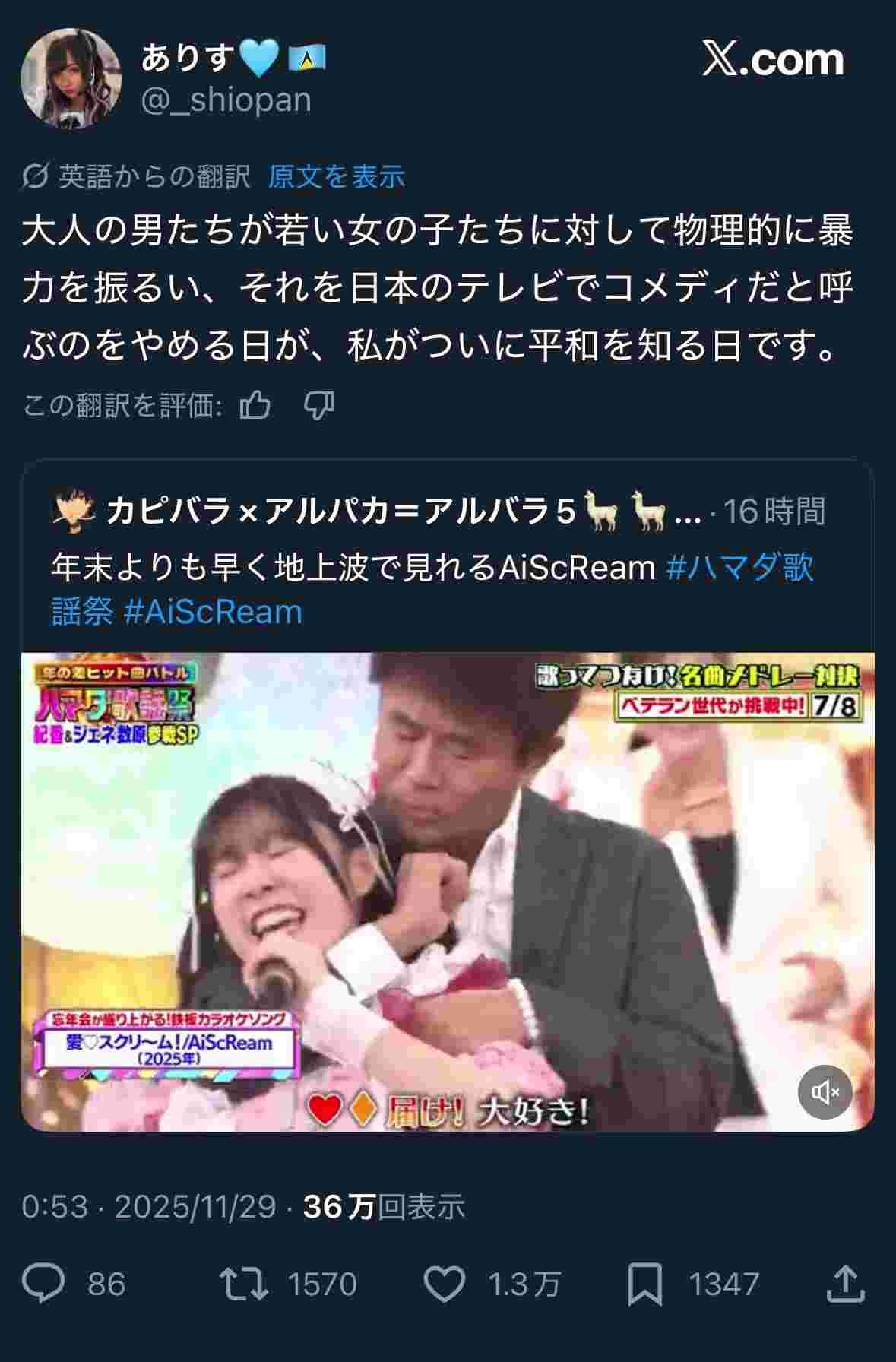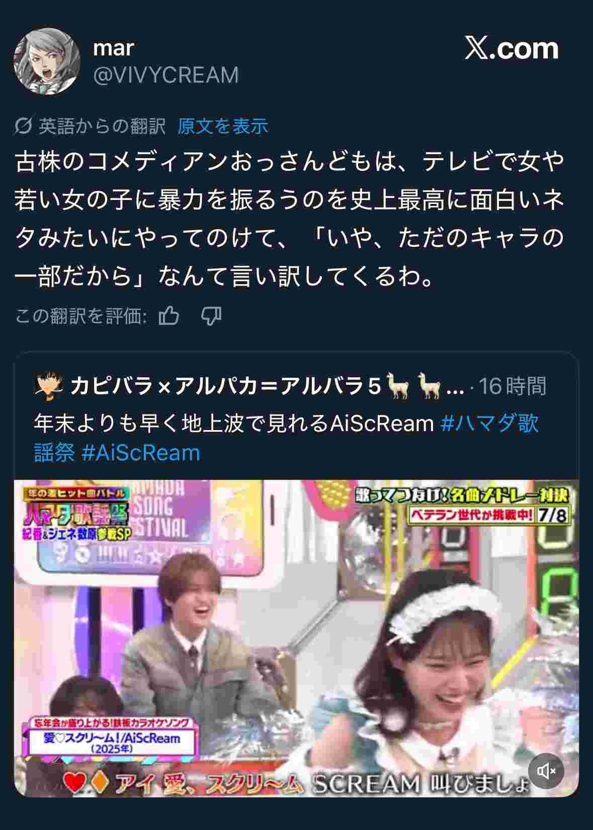 何十年も前の芸を今の基準で叩くのやめろ、と思ったら今年のだった