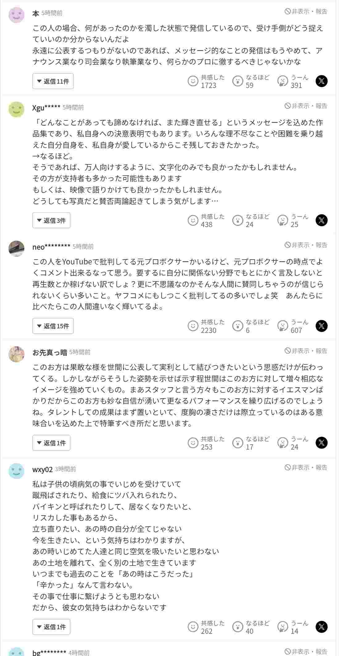 ― 一部のネットニュースや批判的な声の中で、写真集を「性を売っている」かのように結びつける意見もありました。
