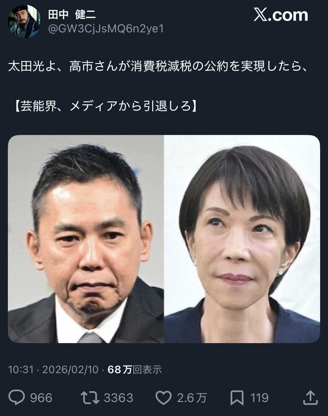 タイタン所属の橋下徹もSS(サナ親衛隊)からするとナンミョー認定か - 23 : 2026/02/11(水) 02:37:11.83 ID:nAzB9ZoX0